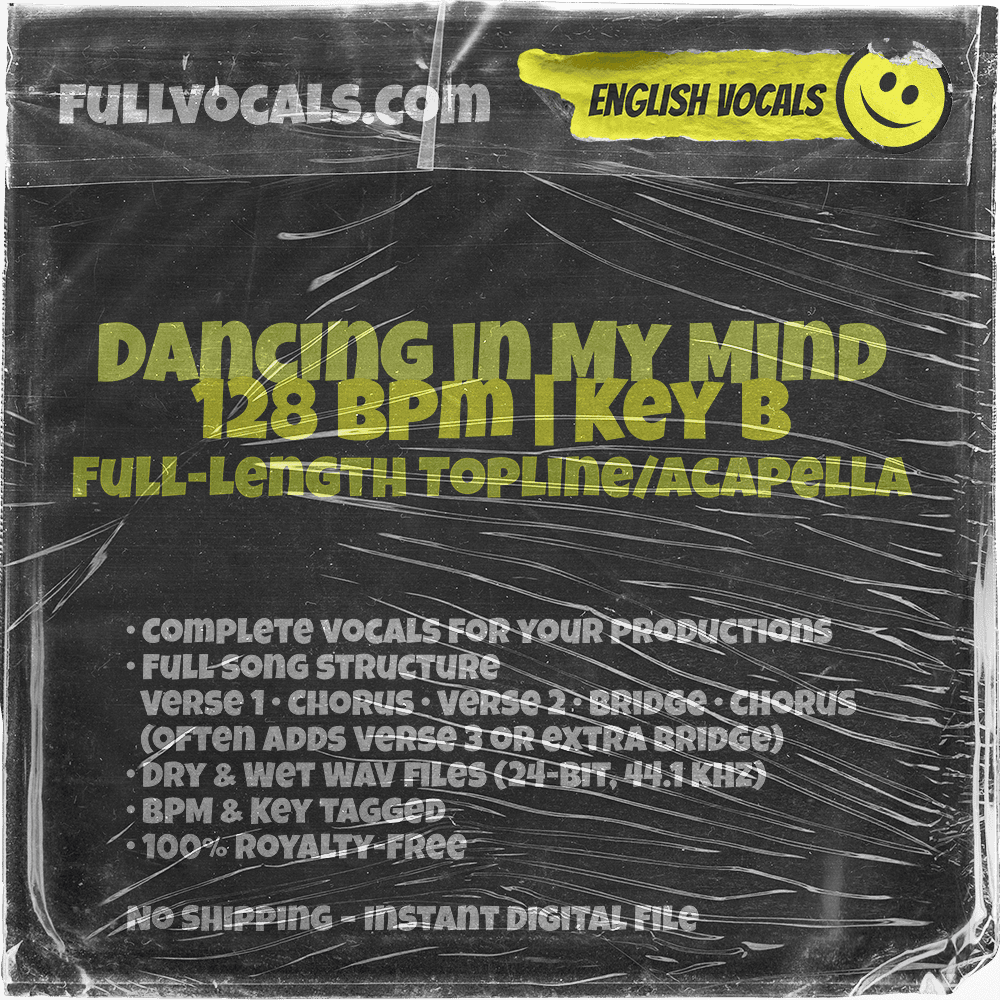 Dancing in My Mind (128 BPM, B Major Key) is a ready-to-use vocal pack for Future Bass, House, and Tropical House producers. Includes DRY stems (raw, unprocessed vocals) and WET stems (pre-mixed with reverb/delay), plus a full song structure (verse, chorus, bridge). Perfect for TikTok trends, Instagram Reels, and Spotify chill playlists.